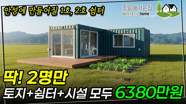 아래 썸네일에서 보시는 것처럼 6380만원에 토지! 체류형쉼터! 기반시설을 모두 포함해서 만들어 드리려 합니다.